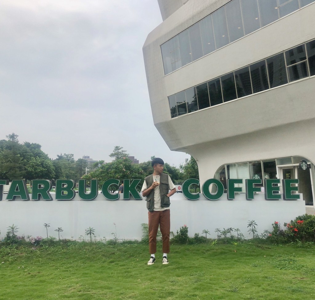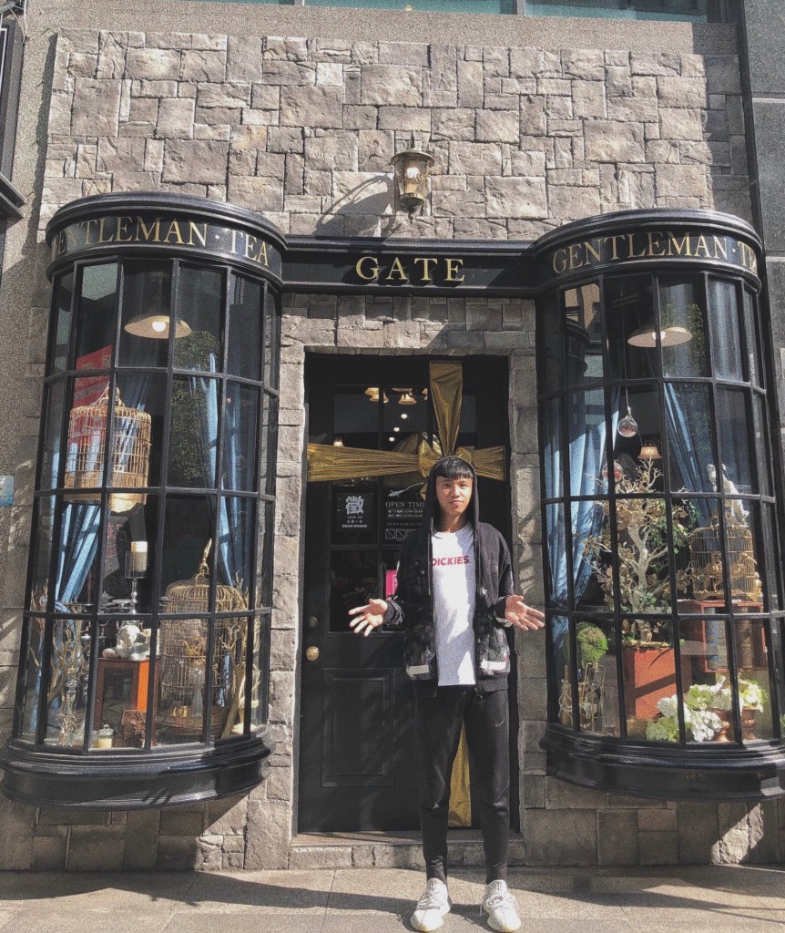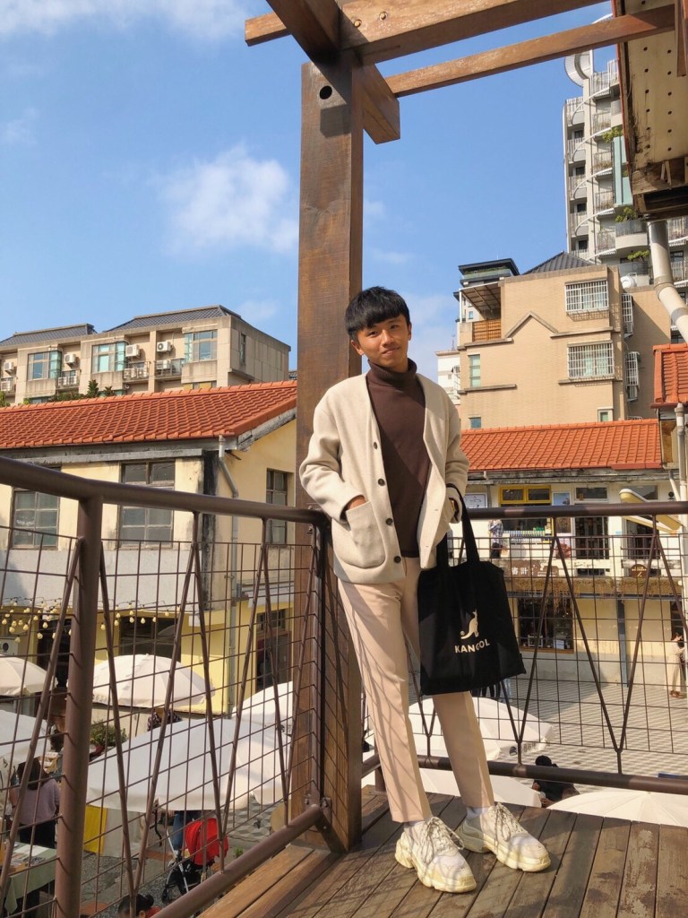 同樣以大地色為主,綠色為大宗,標誌與草皮為同色系,建築物、上衣與寬褲為同色系,雖然為普遍大地色穿搭—綠色棕色為主軸,不過我仍樂在其中(⁎⁍̴̛ᴗ⁍̴̛⁎)