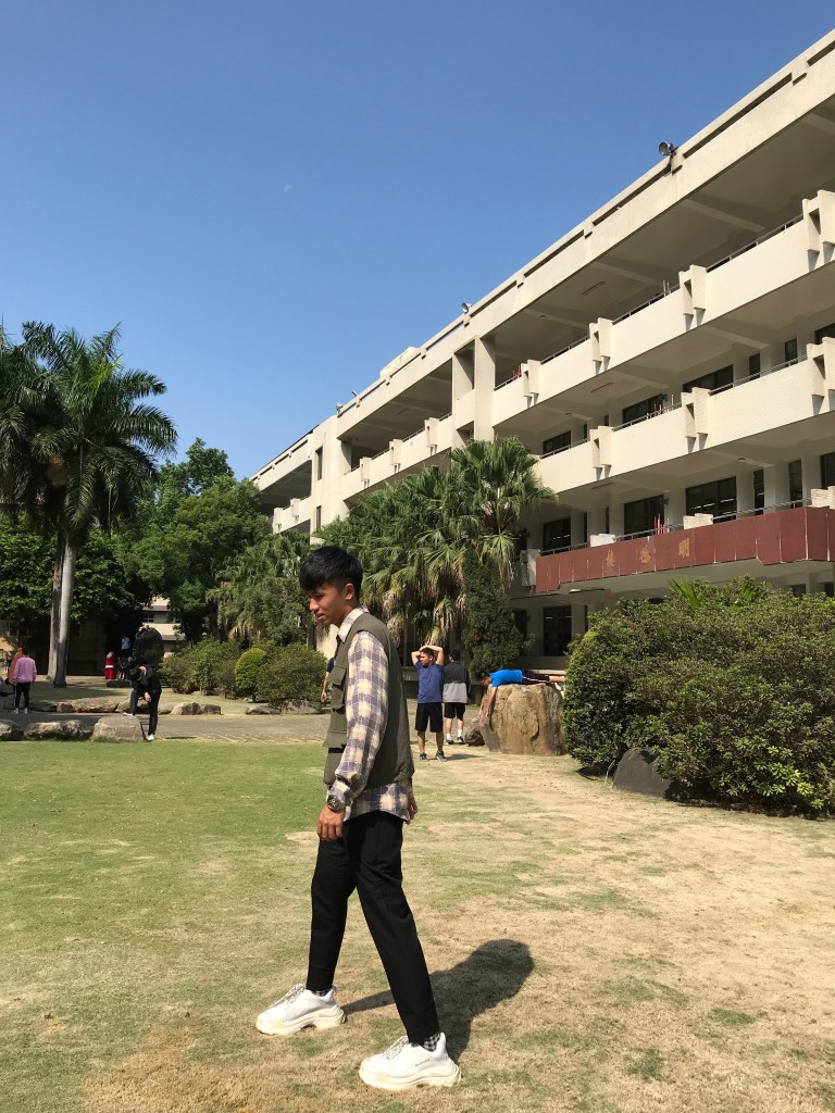 以復古襯衫為主,與我最愛的綠色背景做搭配,尤其是小而精壯的彰中校園充滿著綠樹,到處都隨手可拍,背心為了不讓襯衫顯得單調,讓上、下半身取得視覺平衡